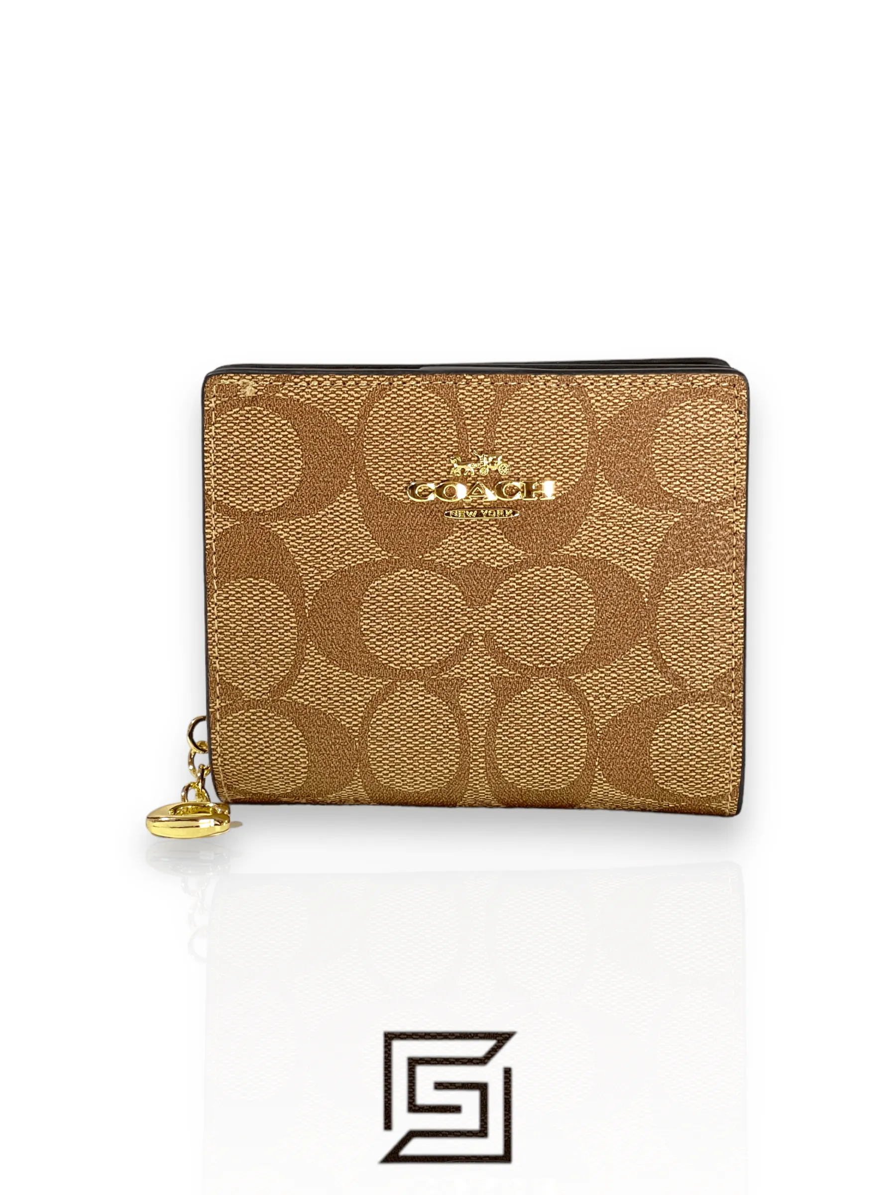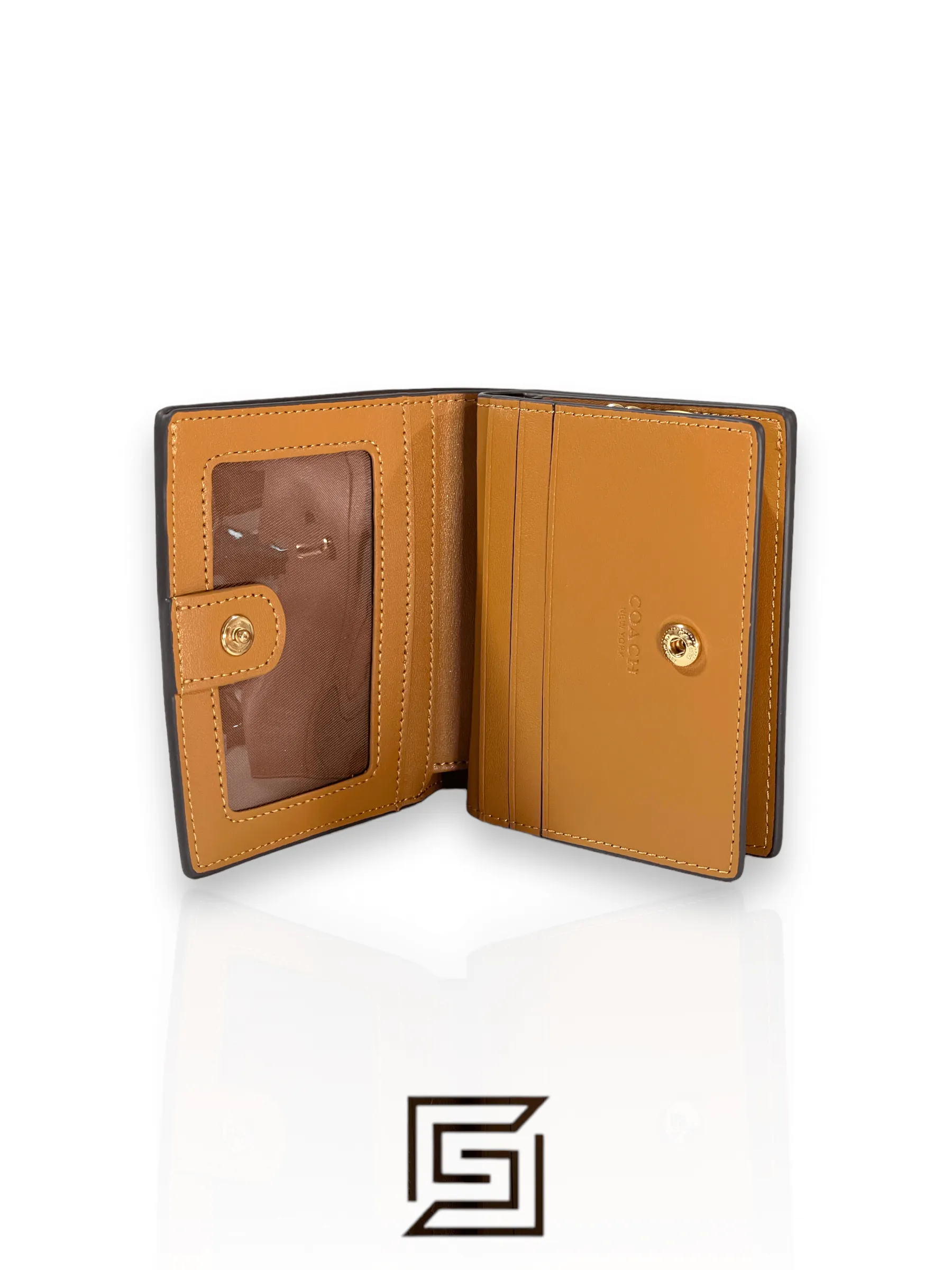 Stylish printed canvas & leather wallet. Holds 3 cards, ID, bills & coins. Snap closure & zip coin pocket. Dimensions: 12.5 x 9 cm. Perfect for everyday use! Order yours now!
