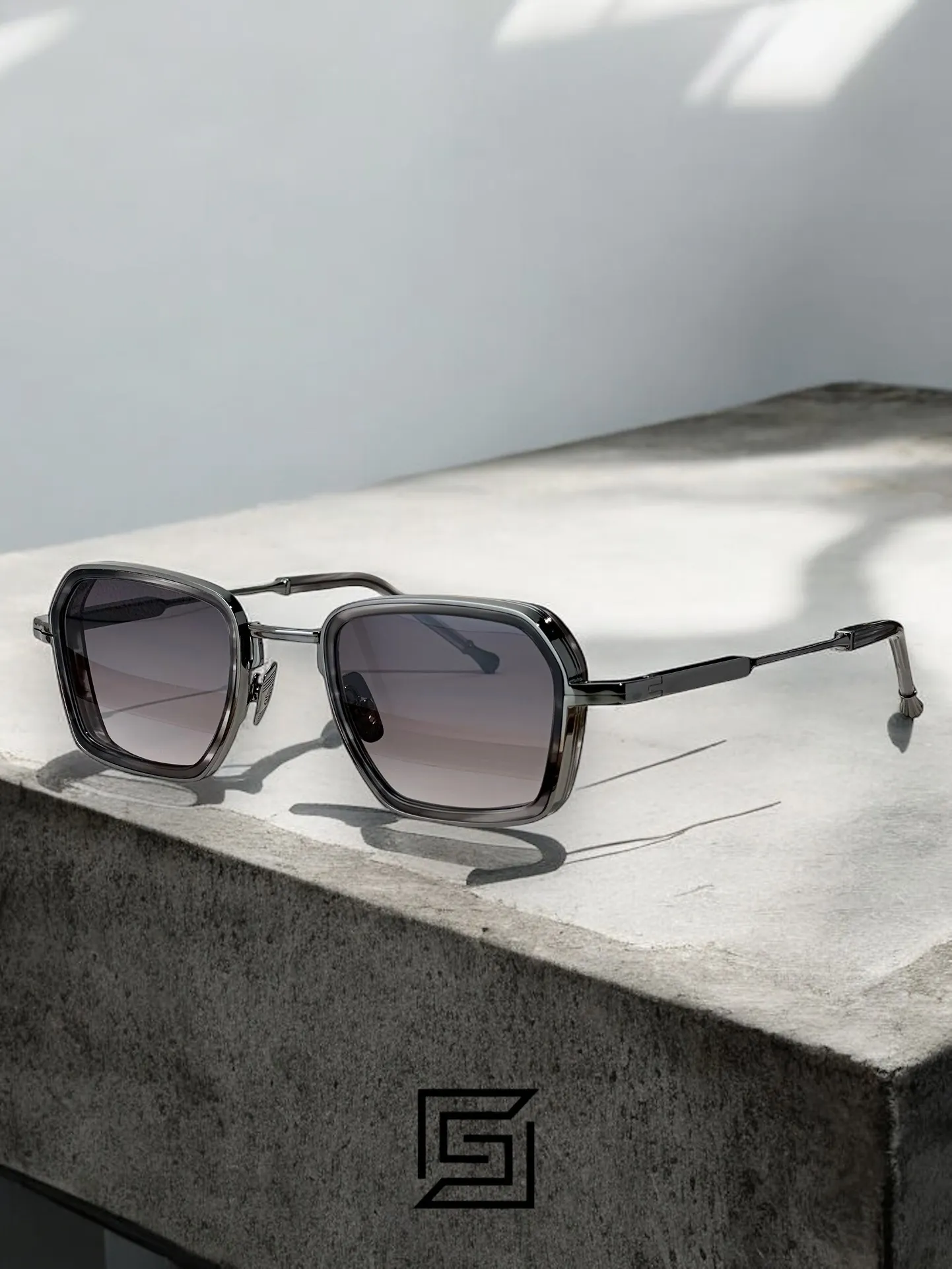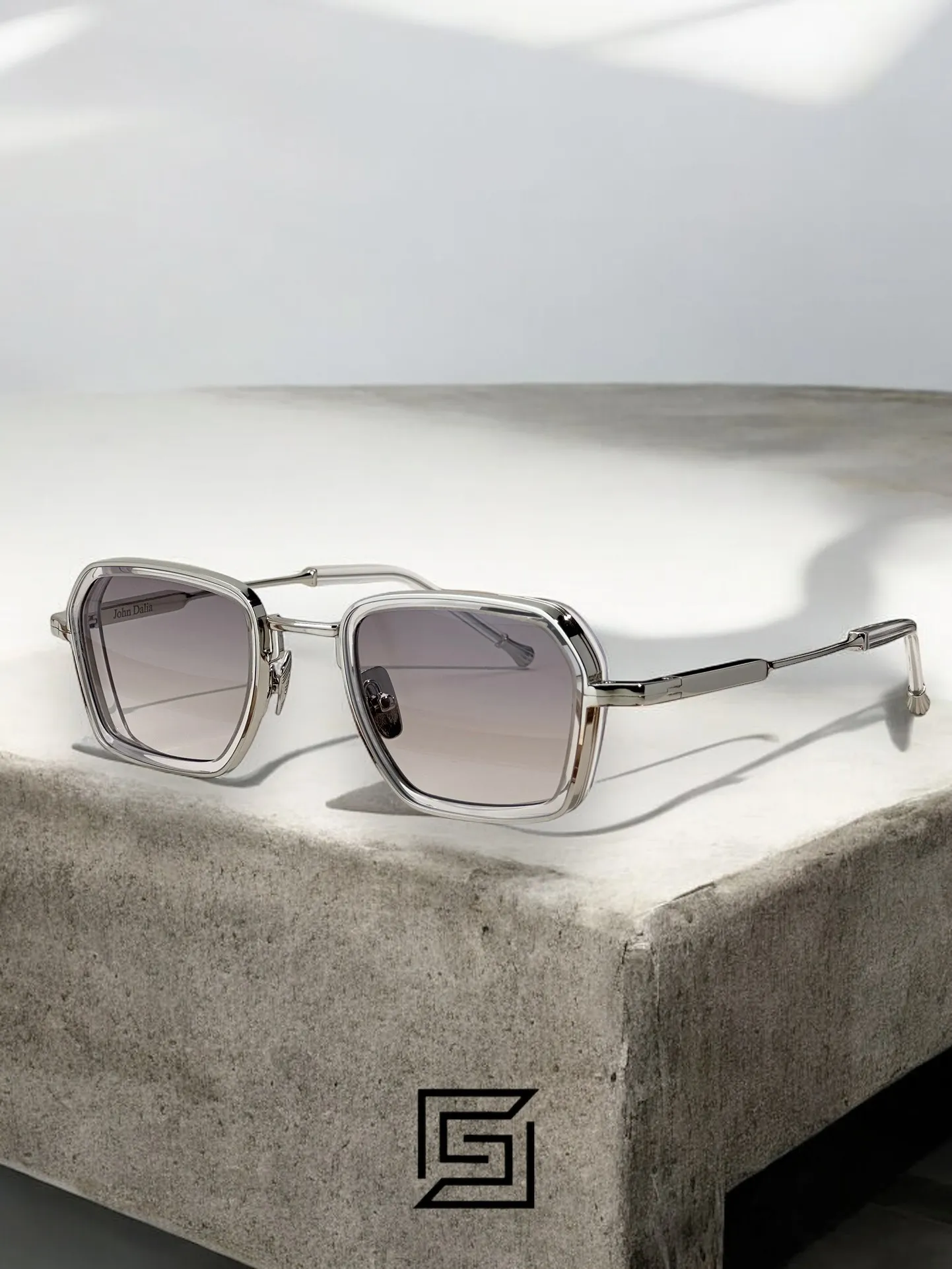 JOHN DALIA CILLIAN sunglasses. Metal-acetate frame in silver-gun-black, grey-brown lenses. 49-25-145 dimensions. Stylish and durable. Shop now!