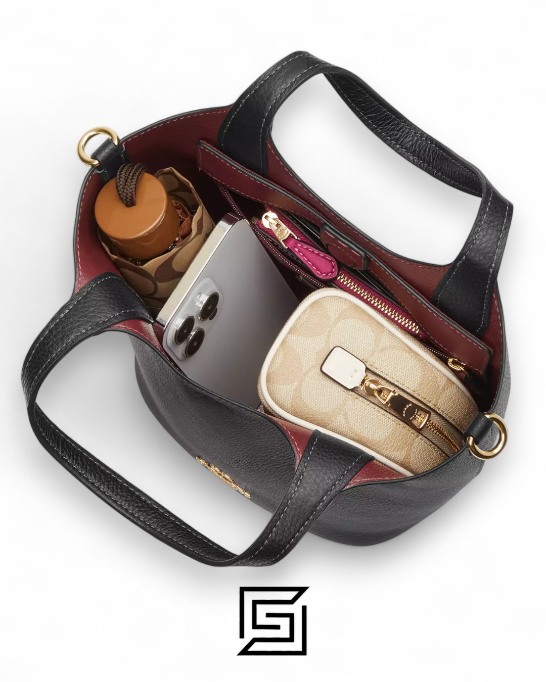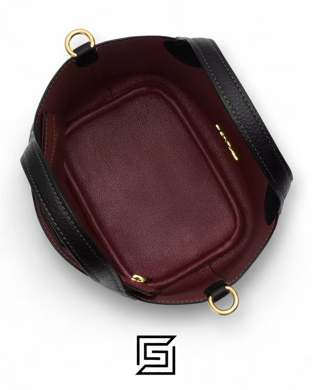 Splash. Our Hanna bag is a perfect bucket. Crafted of double face leather, this bucket bag was designed with style and versatility in mind, with room for your wallet, phone and other essentials. It travels well, and is easily worn crossbody or carried by its handles. Its secure magnetic snap closure makes opening and closing it, well, a snap. Looking for women’s leather shoulder bags that are as effortless as they are elegant? Hanna has it all.