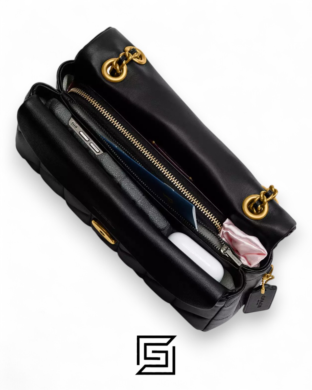 A modern take on an archival 1970s Coach design, our structured Tabby shoulder bag is crafted of quilted plush, ultra-soft nappa leather. Finished with our Signature hardware for an iconic touch, the compact 26 features a long leather chain strap to wear crossbody or double up for a shorter, dressier look.