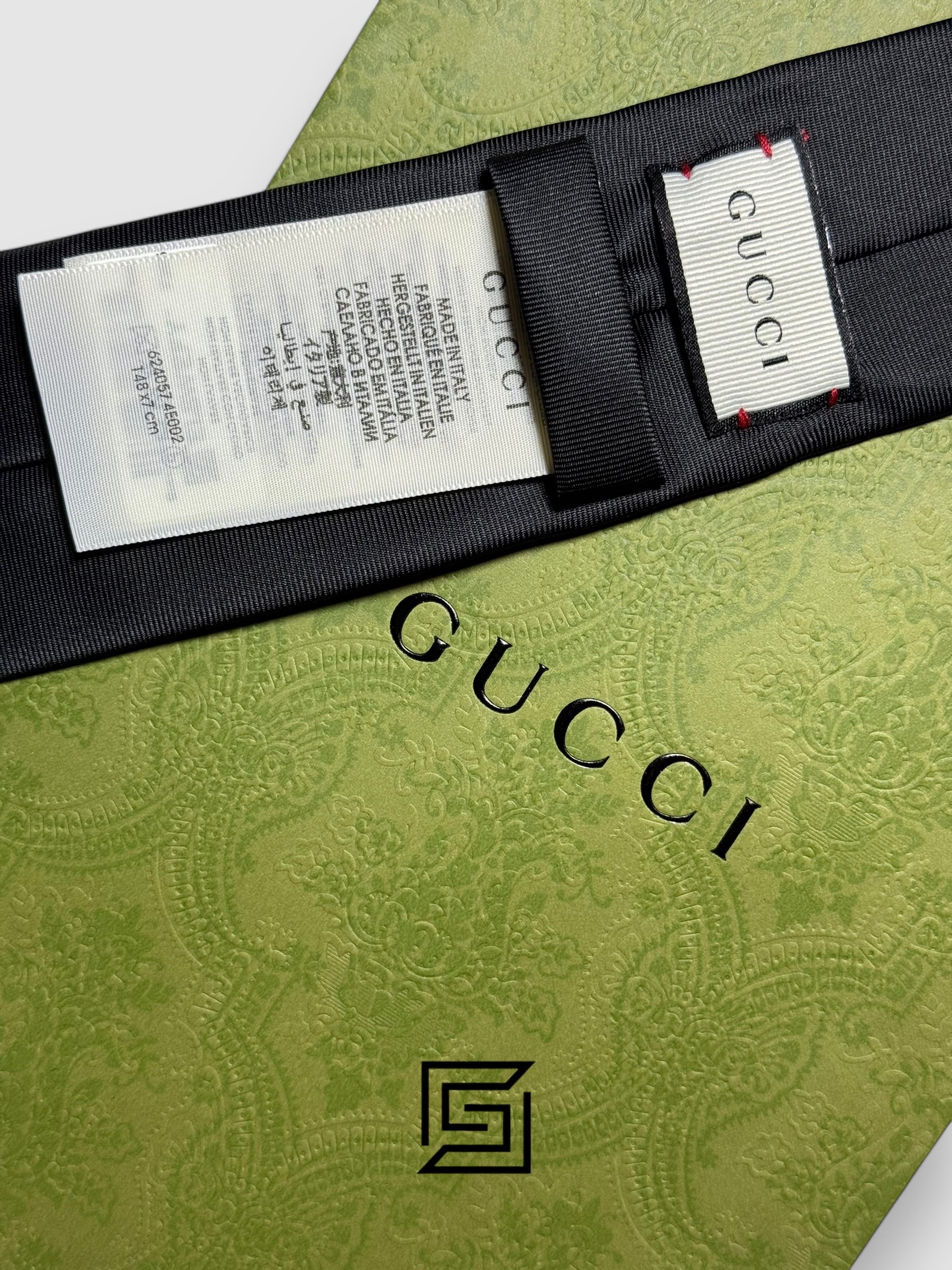 Authentic Gucci black silk sunglasses (7cm width, 148cm length). Includes original box and bag. Experience luxury eyewear.