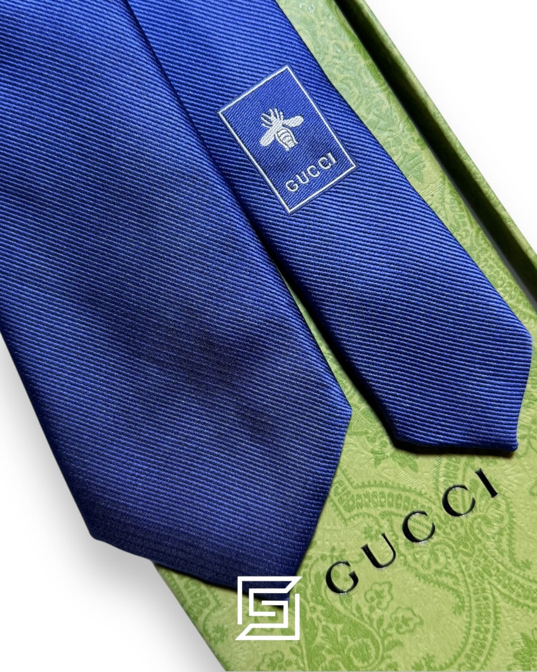Authentic Gucci navy blue silk sunglasses (7cm width, 148cm length). Includes original box and bag. Experience luxury eyewear.