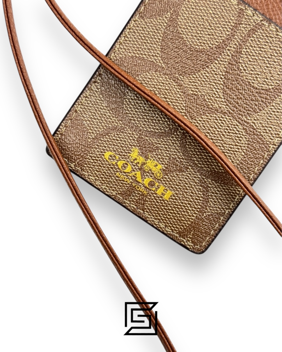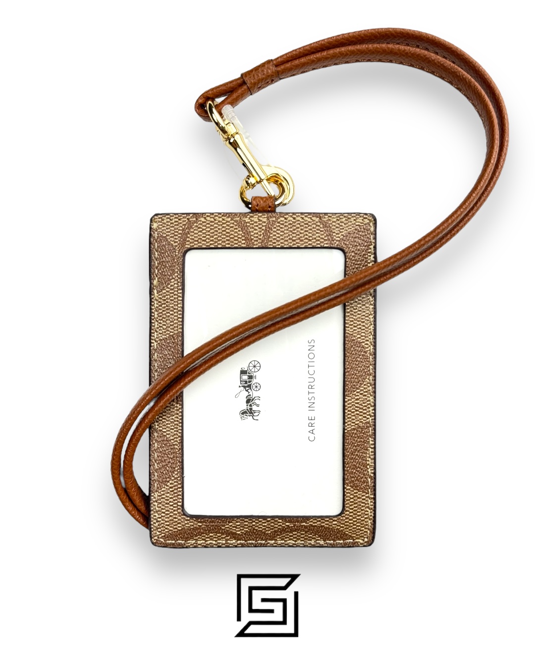 Stylish CZ285 featuring signature coated canvas & smooth leather. Includes two credit card slots, detachable lanyard, and ID window. Dimensions: 7cm x 10cm. Perfect for everyday use!