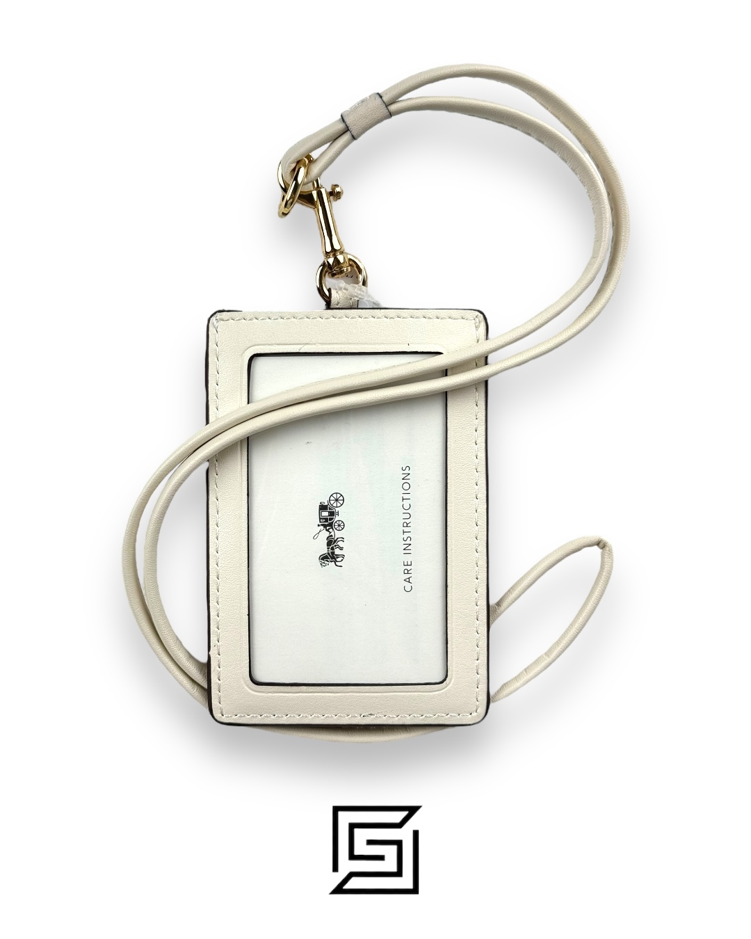 Stylish C6437 case (7cm x 10cm) in printed canvas & leather. Features 2 credit card slots, ID window, & detachable lanyard. Secure & convenient!
