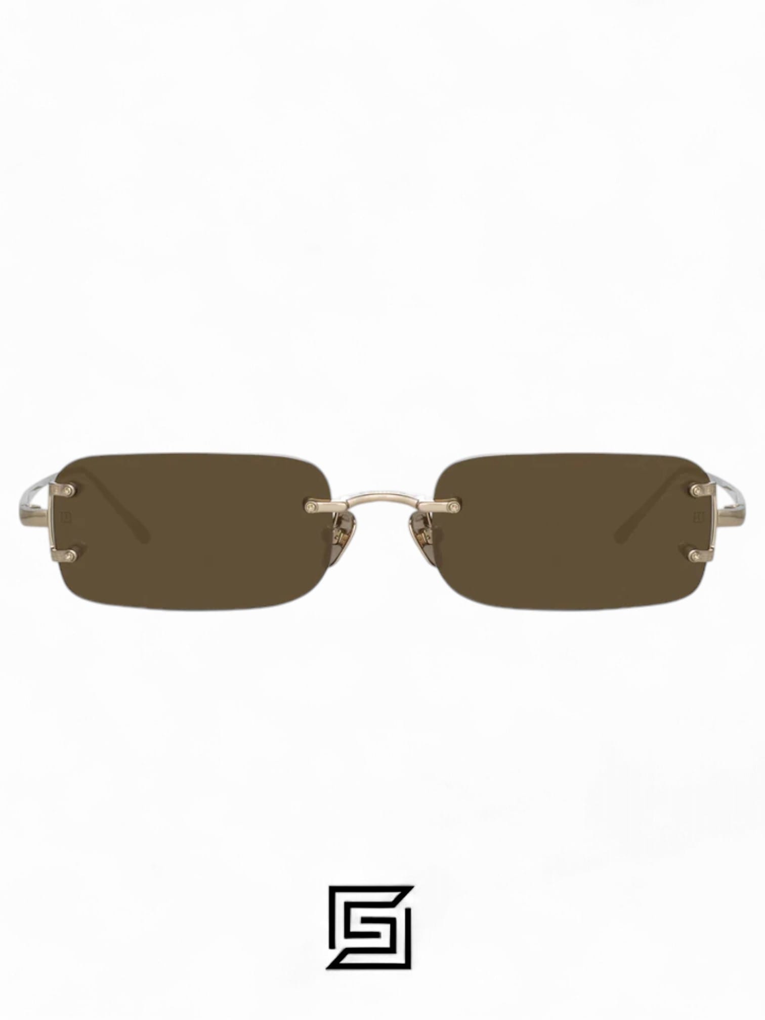 Linda Farrow LFL/1131/GOLD X BROWN sunglasses. Gold metal frame with brown lenses. Lens width: 53mm, bridge: 17mm, temples: 140mm. Stylish and sophisticated eyewear.
