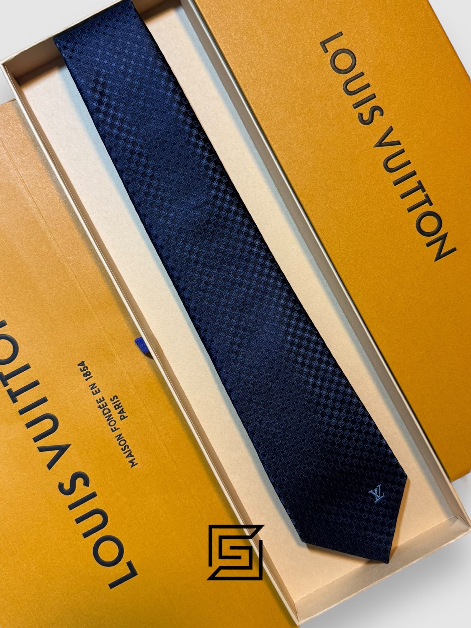 Authentic Louis Vuitton navy blue silk sunglasses (8cm x 148cm). Includes original box and bag. A luxurious accessory for any occasion. Shop now!