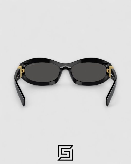 Acetate sunglasses with a sophisticated rectangular shape. The frame features thin rims and ultra-flat lenses that highlight the extreme lightness. The vertical Miu Miu logo adds its signature to the temples for a refined touch.