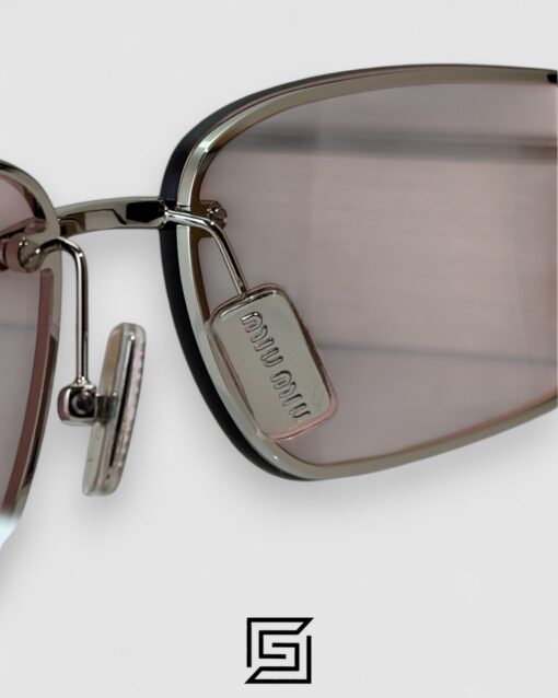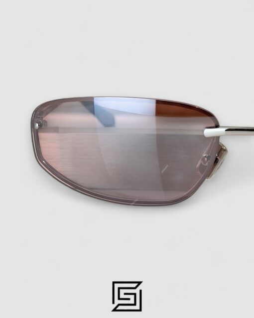 Classic and sophisticated attitudes blend together in these Miu Miu sunglasses. The ultra-light metal frame features rimless oval lenses enriched by a palette of playful shades. The vertical Miu Miu logo decorates the ultra-thin temples.