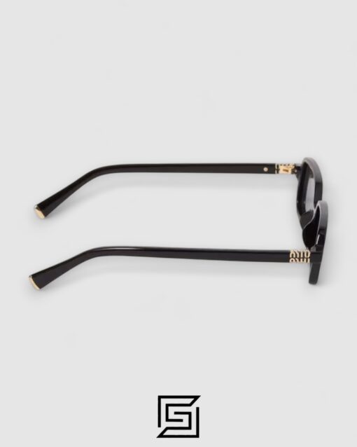 Acetate sunglasses with a sophisticated rectangular shape. The frame features thin rims and ultra-flat lenses that highlight the extreme lightness. The vertical Miu Miu logo adds its signature to the temples for a refined touch.