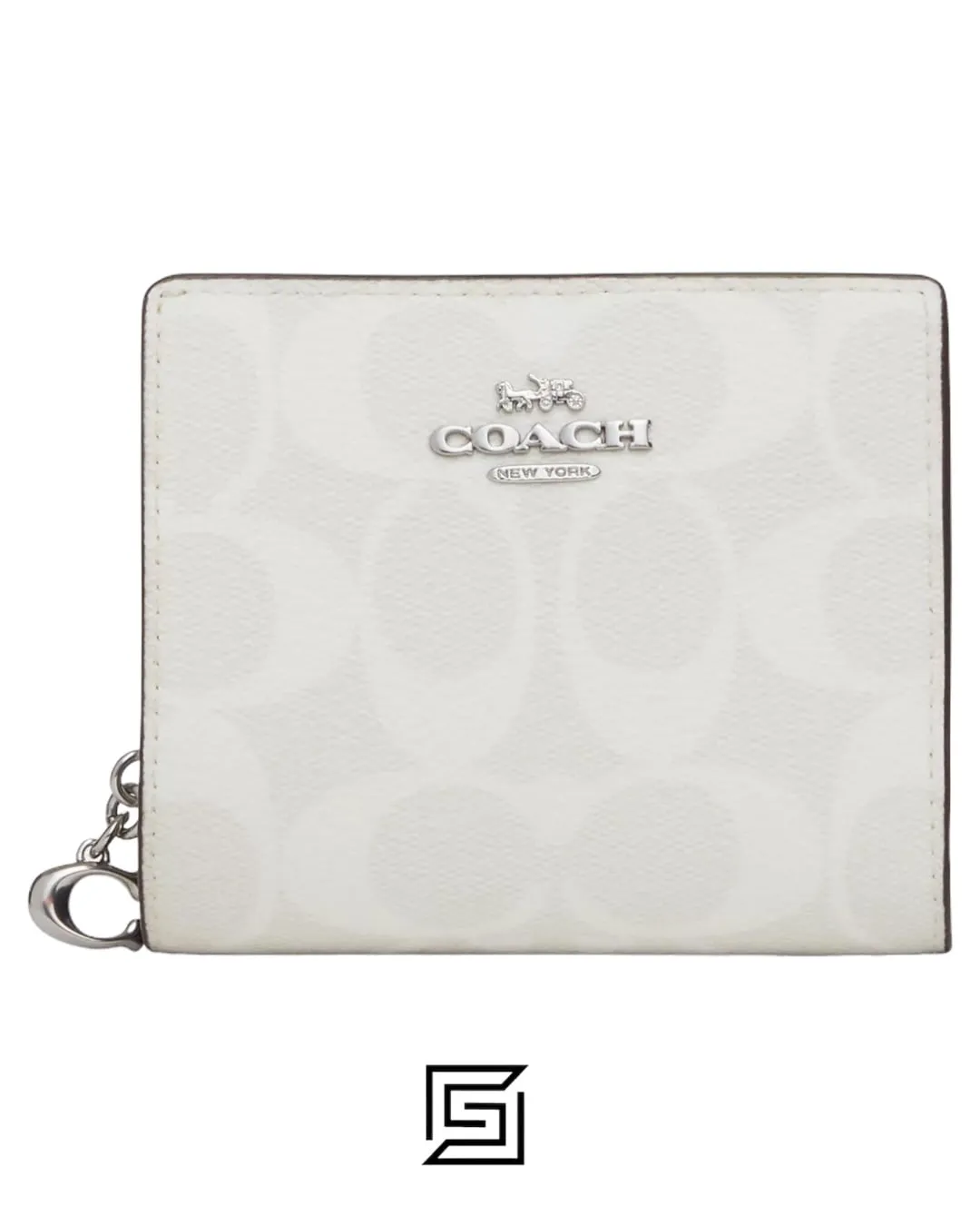 Stylish wallet crafted from printed canvas & smooth leather. Features 3 card slots, ID window, bill compartment, snap closure & zip coin pocket. Size: 12.5 x 9 CM.