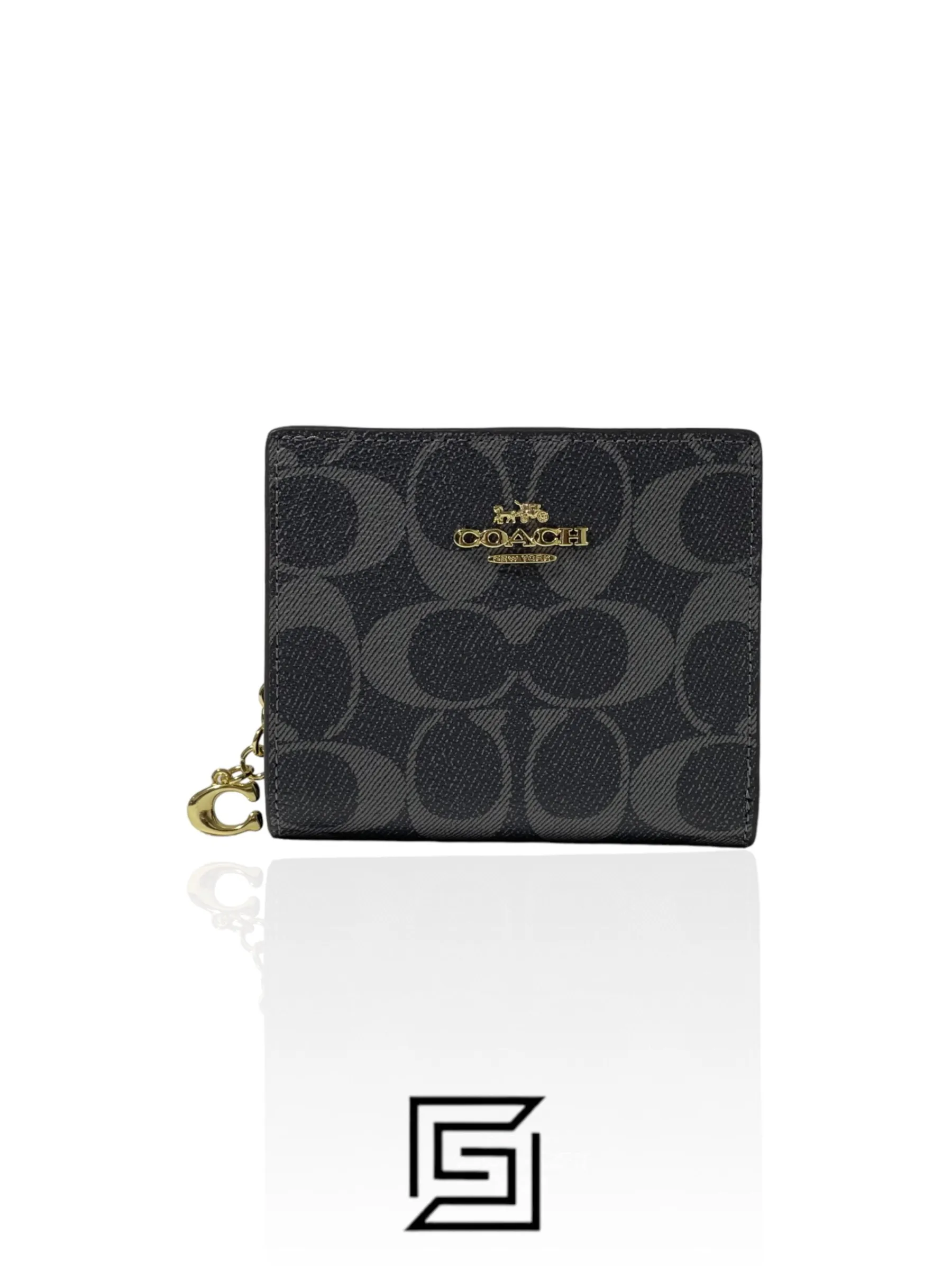 Stylish printed canvas & leather wallet! Holds 3 cards, ID, bills & coins. Snap closure, zip coin pocket. Compact size: 12.5 x 9 cm. Perfect everyday accessory.