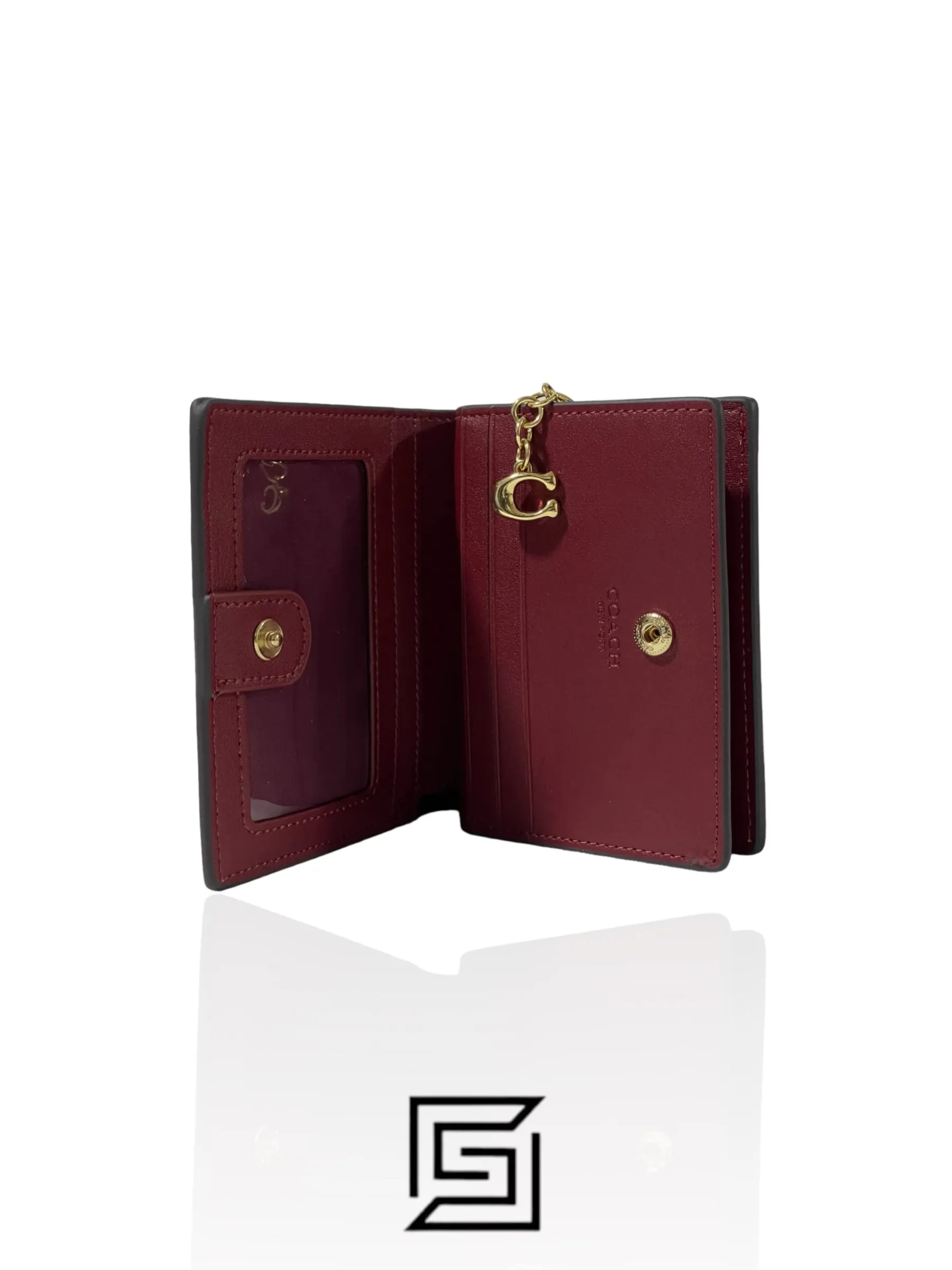 Stylish sunglasses case crafted from printed canvas and smooth leather. Features 3 card slots, ID window, full-length bill compartment, snap closure, and an outside zip coin pocket. Size: 12.5 x 9 cm. Perfect for travel!