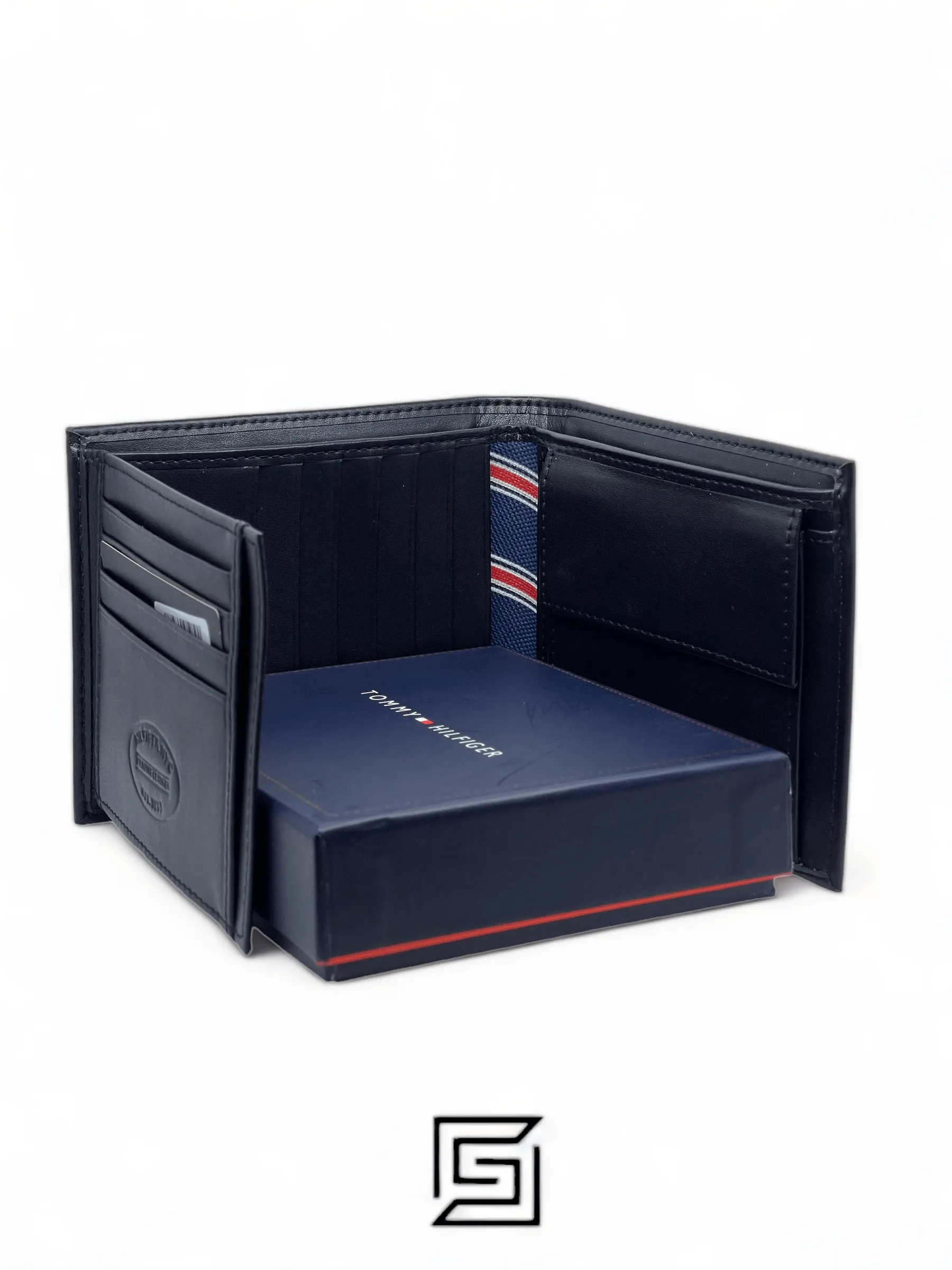 Buy leather TOMMY SINGLE WALLET W FLAT METAL LOGO FLAT PATTERN BIG SIZE/BLACK